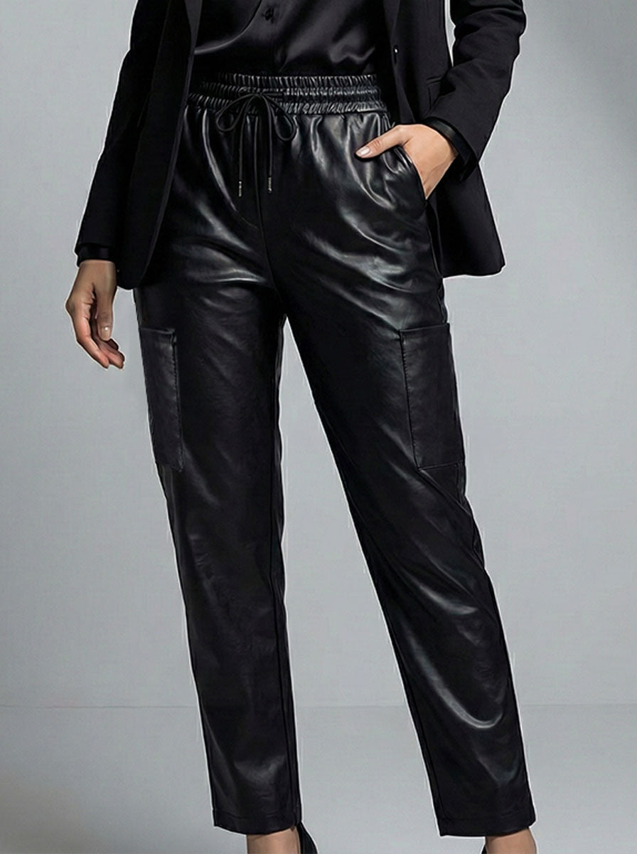 825 Women's Straight Fit Leather Trousers | Chic Faux Leather Pants Pakistan - velnoor
